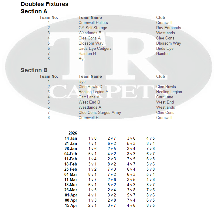 Wednesday Doubles Fixtures